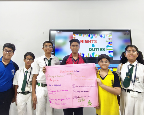 | Enriching young minds of their Rights and Responsibilities: Chart Making Activity | Students were divided into two groups. Each group prepared their charts encompassing the rights and duties of Students in school. Separate charts were made keeping in mind Fundamental rights and Fundamental duties of the Indian Constitution. |